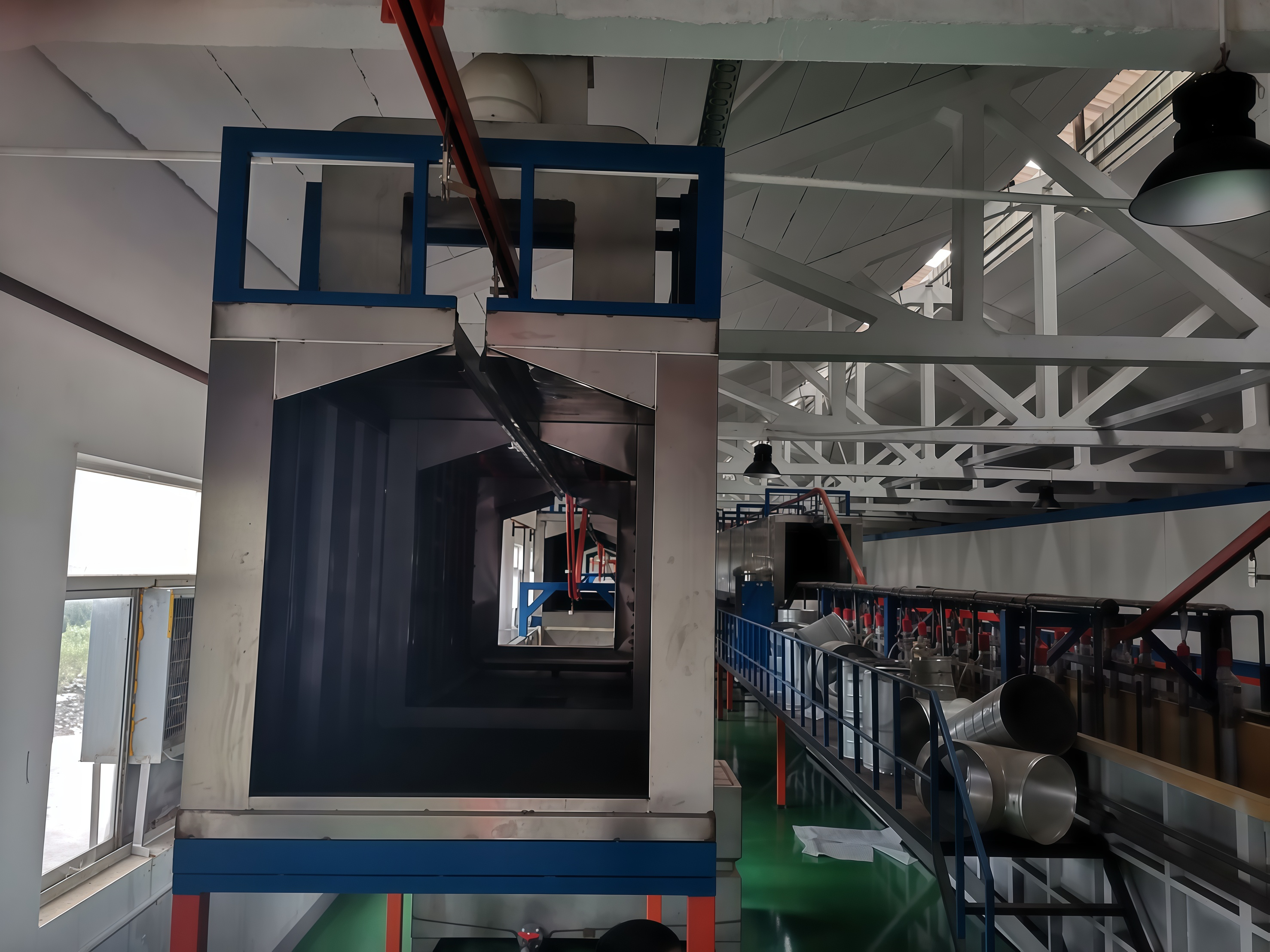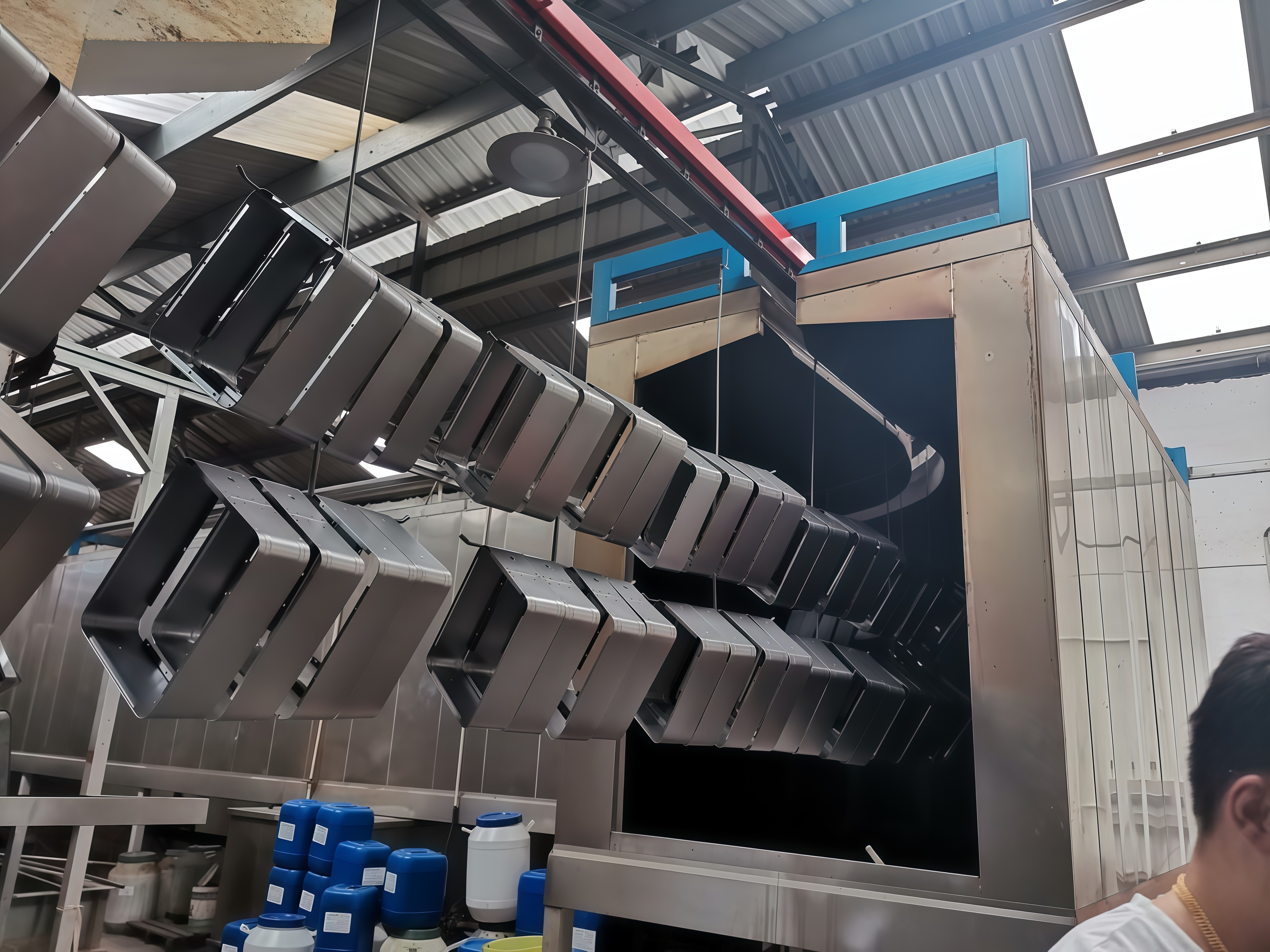 Hanging conveyor spraying assembly line